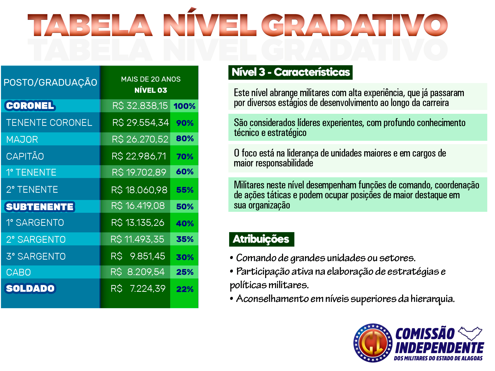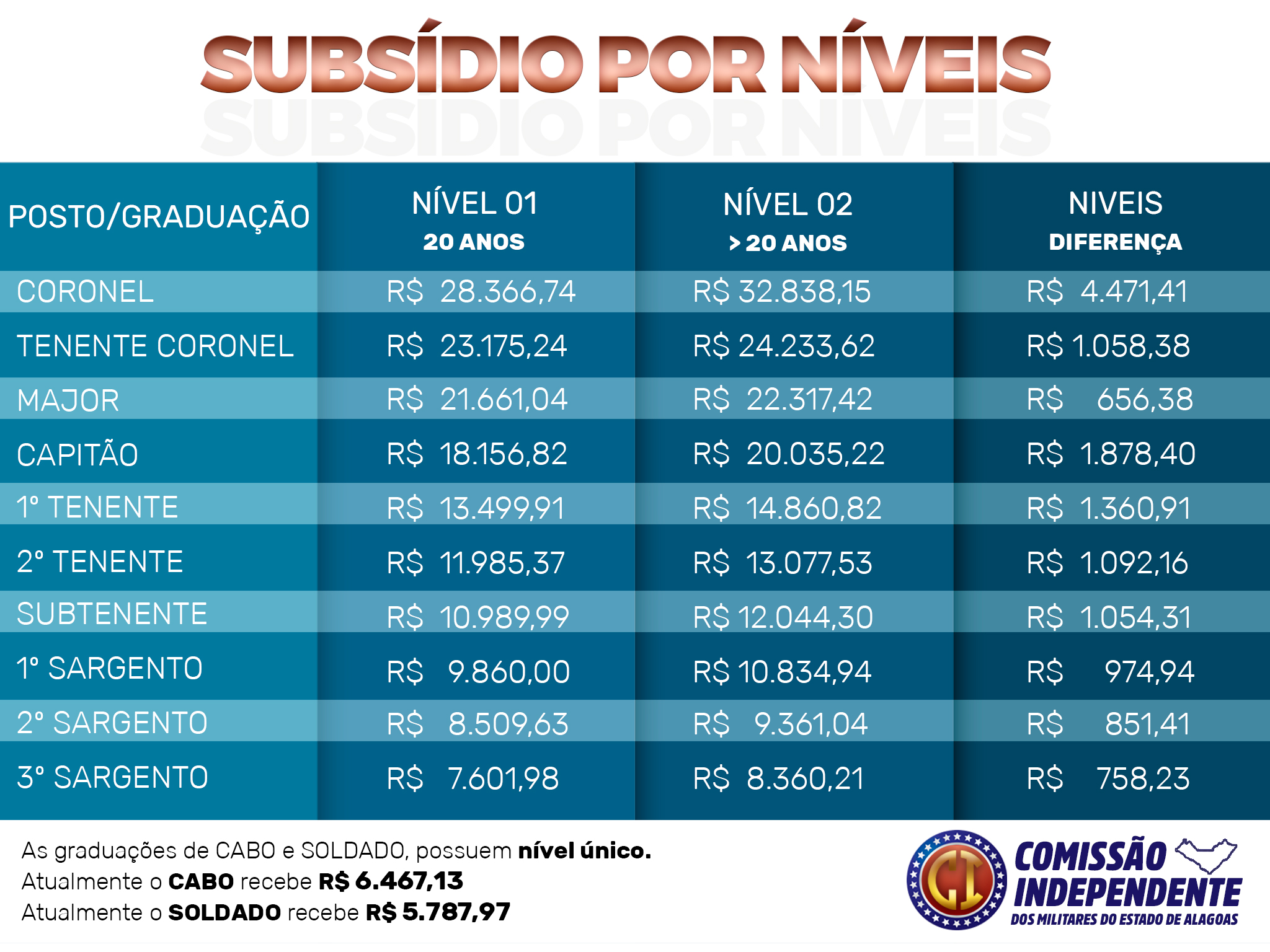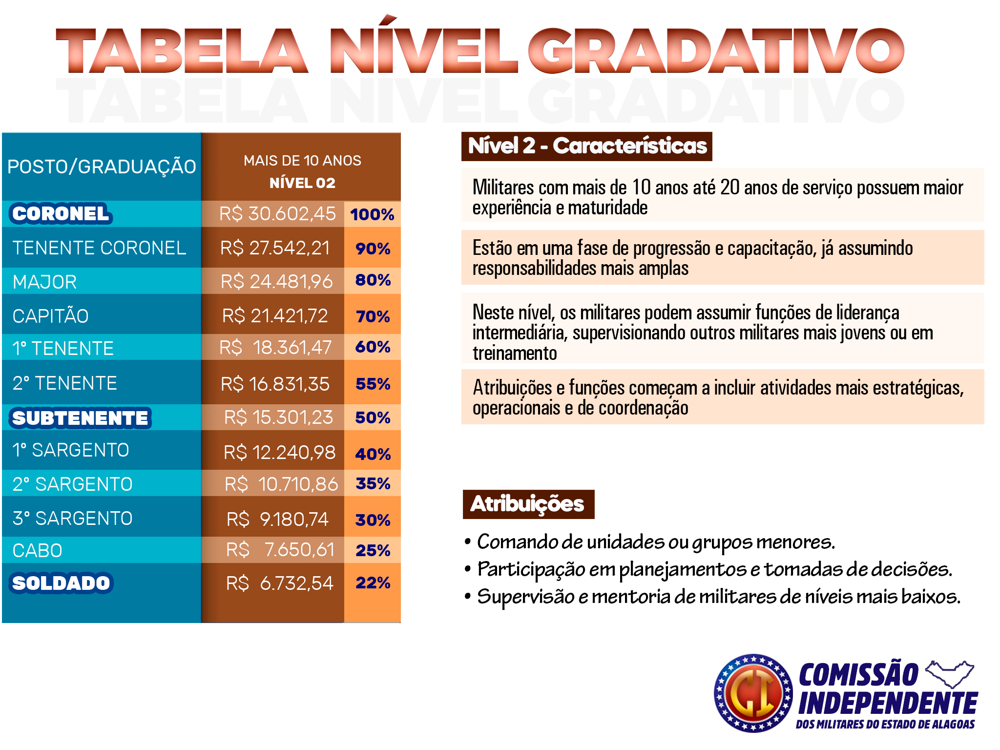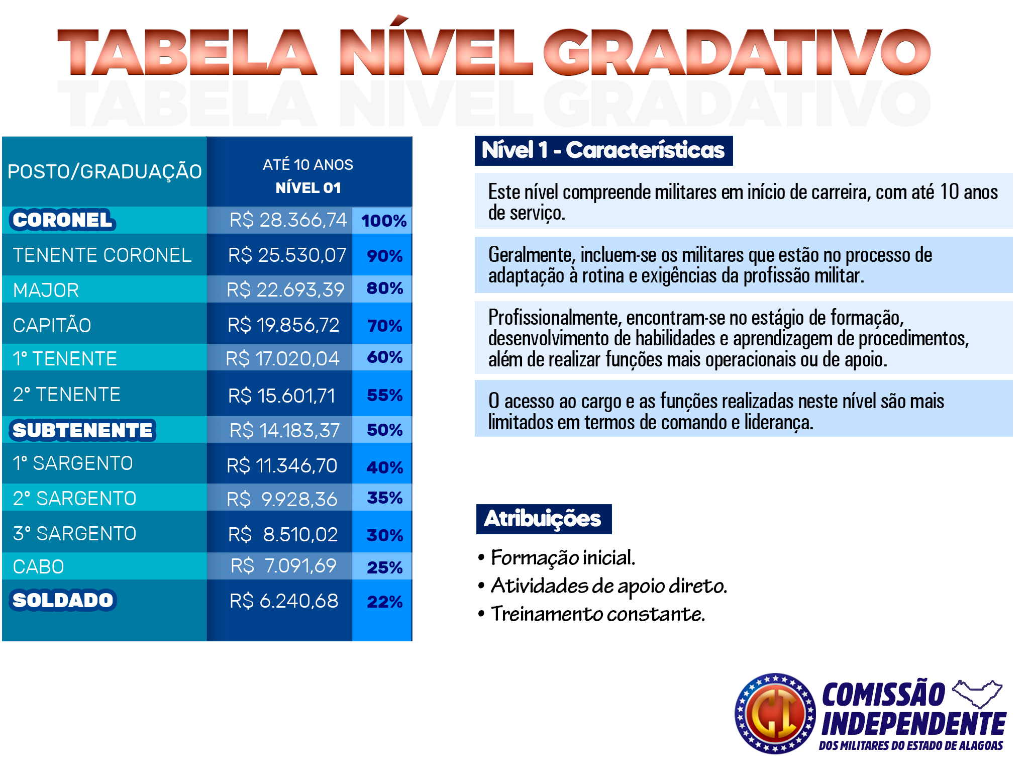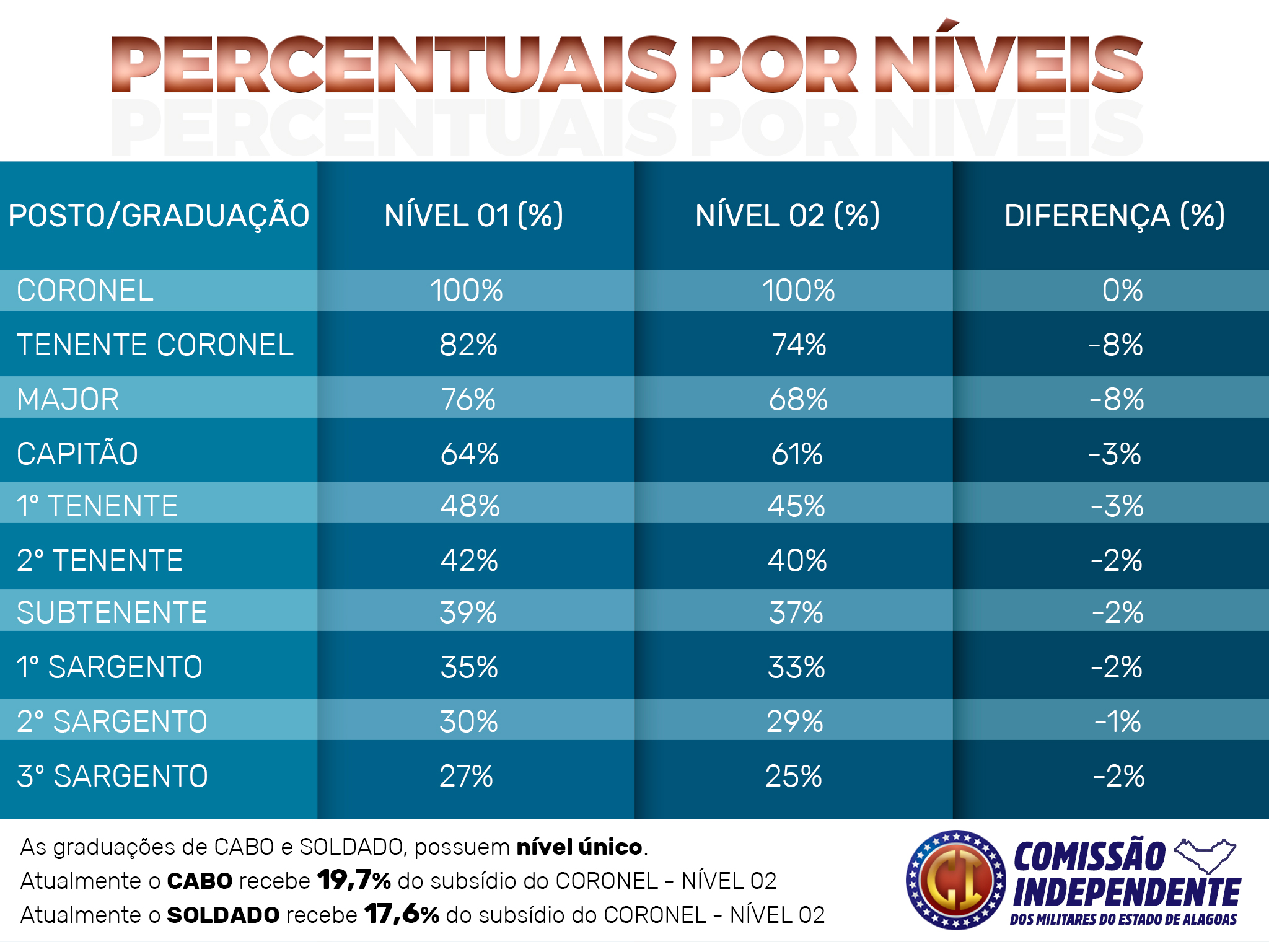 Nessa apresentação mostramos um comparativo entre as tabelas atual dos Militares de Alagoas, a proposta do Movimento Unificado e a proposta da Comissão Independente.